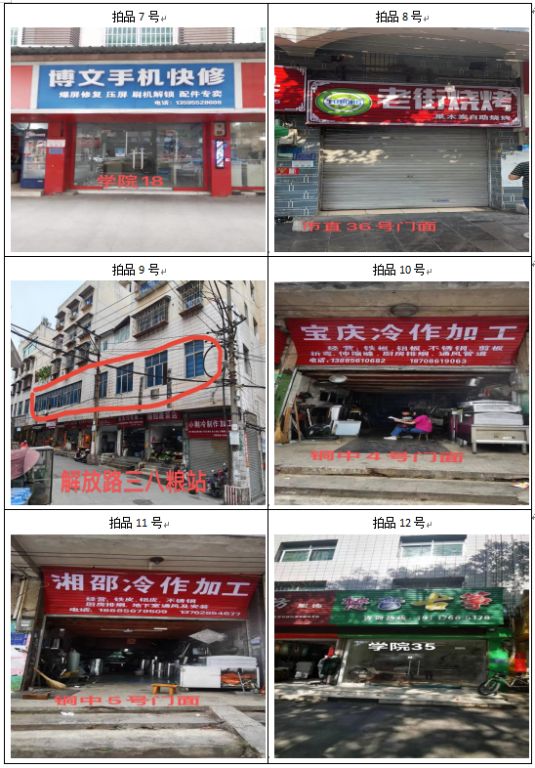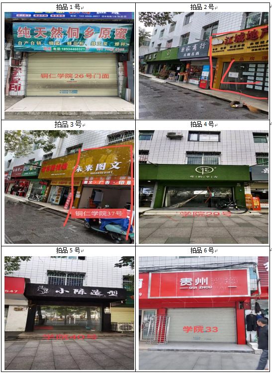 拍品2號至6號標的:位于清水大道銅仁附中對面,面積均為:27.5㎡,租賃期均為3年(2023年9月1日至2026年8月31日),附近有車站、醫院、銀行、酒店、超市、學校等,交通便利,人流量大。