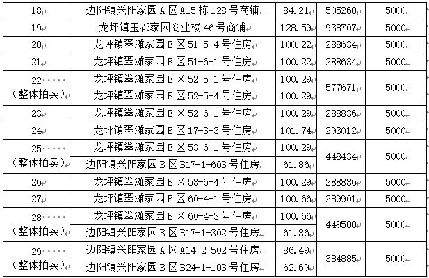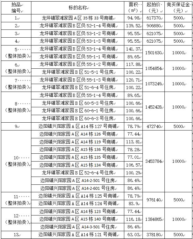 【已結束】龍坪鎮翠灘家園A區B區、邊陽鎮興陽家園A區B區、龍坪鎮玉都家園商業樓部分商鋪及住房拍賣公告