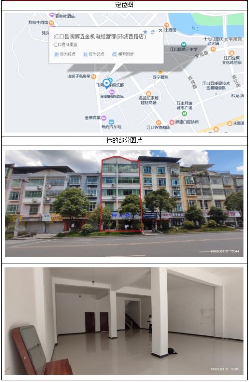1、江口縣雙江鎮(zhèn)環(huán)城西路商住房一棟,建筑面積:958.93㎡,起拍價:2910111.87元,競買保證金:40萬元。