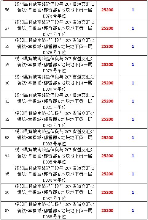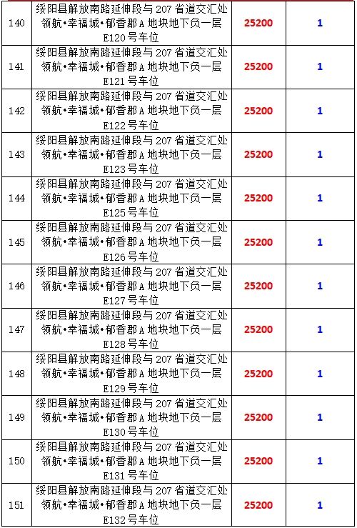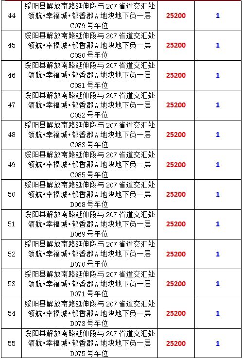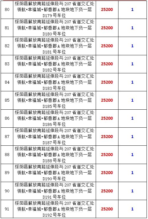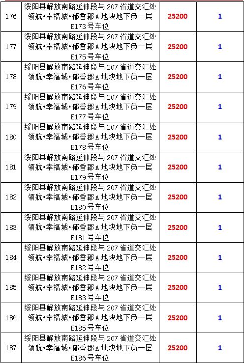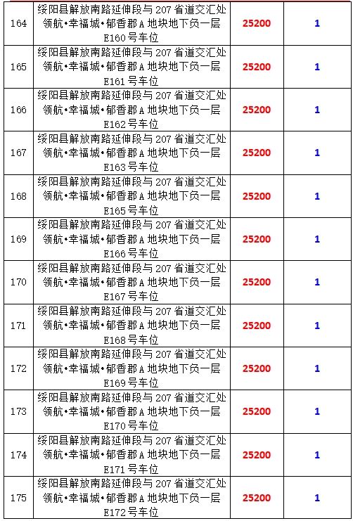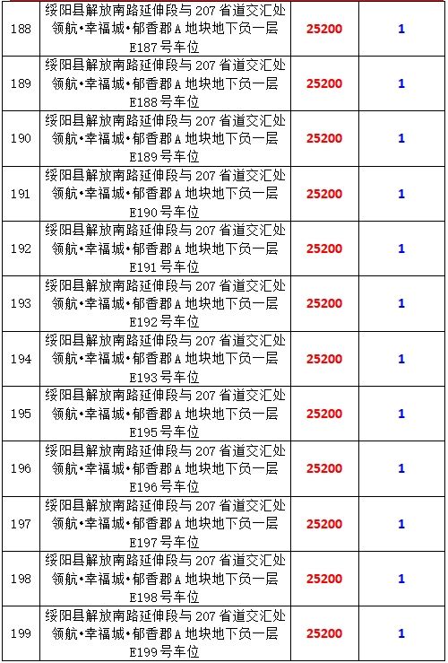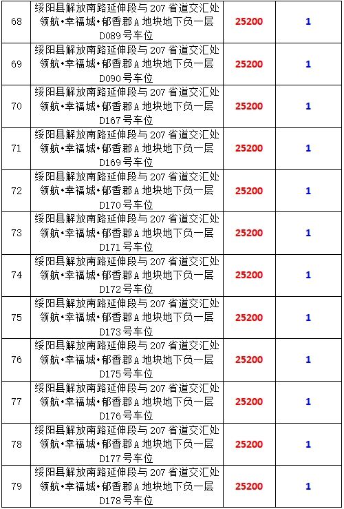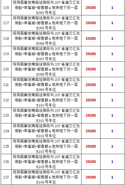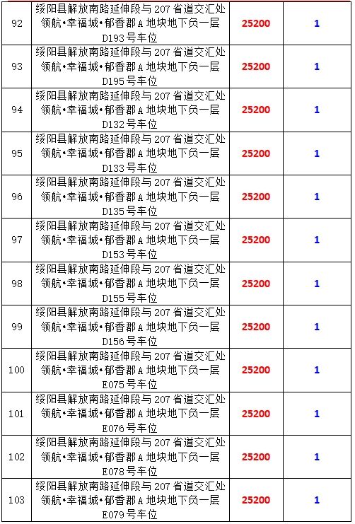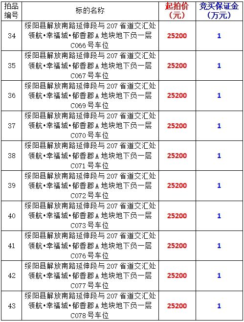 6、綏陽縣解放南路延伸段與207省道交匯處領(lǐng)航?幸福城?郁香郡A地塊地下負(fù)一層170個車位,起拍價:25200元/個,競買保證金:1萬元/個。