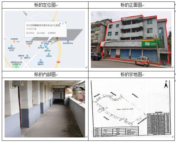 標(biāo)的坐落于貴州省興仁市屯腳鎮(zhèn)街上,房屋總層數(shù)4層,共有宗地面積401.37㎡,房屋建筑面積:607.4㎡,房屋結(jié)構(gòu):混合結(jié)構(gòu),房屋產(chǎn)權(quán)證號:黔(2023)興仁市不動產(chǎn)權(quán)第0005222號,權(quán)利類型:國有建設(shè)用地使用權(quán)/房屋所有權(quán),權(quán)利性質(zhì):出讓/自建房,用途:商務(wù)金融用地/商業(yè)、金融、信息,使用期限:2012年9月29日起2052年9月28日止。