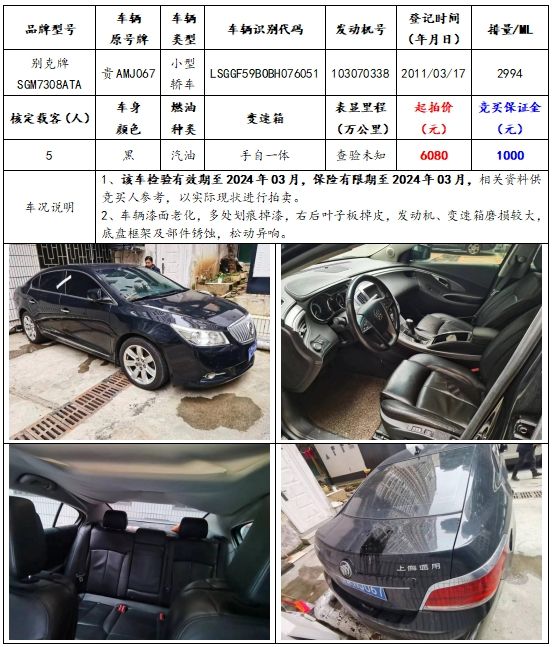 拍品編號1:別克牌SGM7308ATA小型轎車一輛;