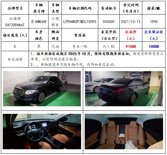 拍品編號2:紅旗牌CA7209HA6T小型轎車一輛;