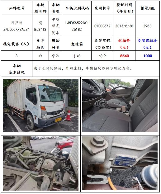 拍品編號3:日產牌ZN5050XXYA5Z4中型廂式貨車一輛