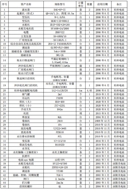 羅甸縣沫陽關、柏林水電站所涉及的報廢資產(整體拍賣),起拍價:423750元,競買保證金:5萬元。
