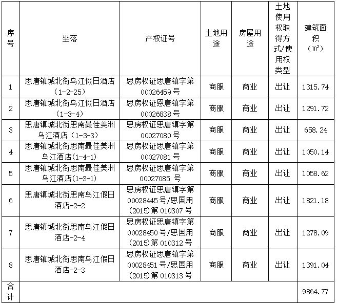 拍賣編號2:思唐鎮城北街思南最佳美洲烏江酒店商業用房,建筑面積:9421.94㎡;