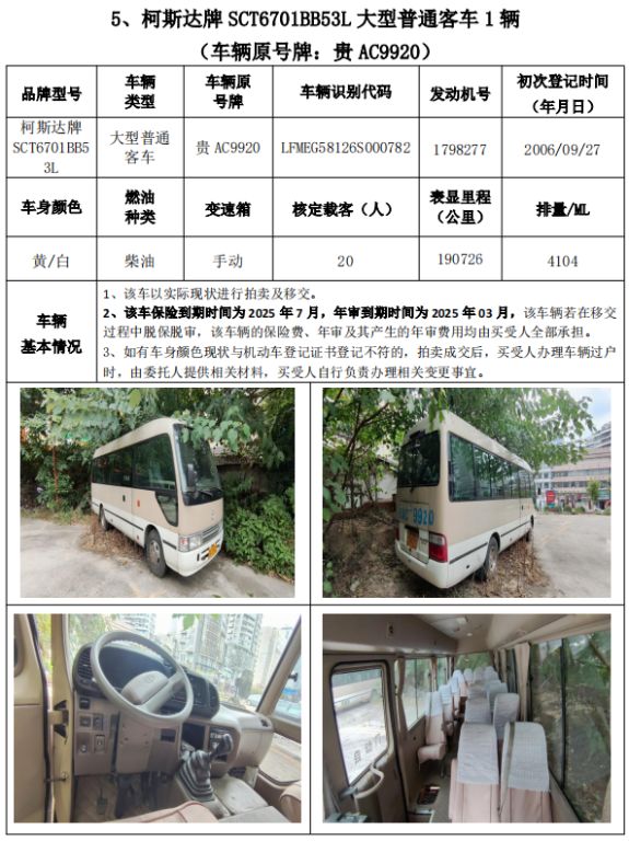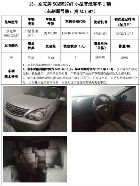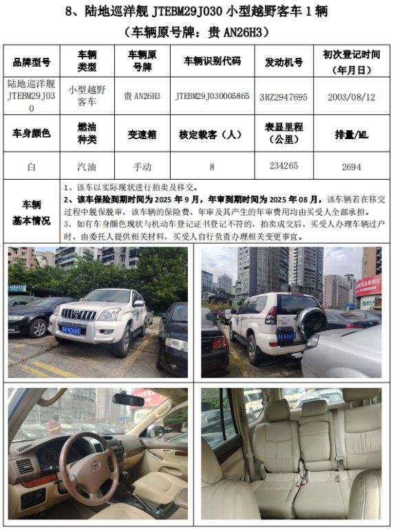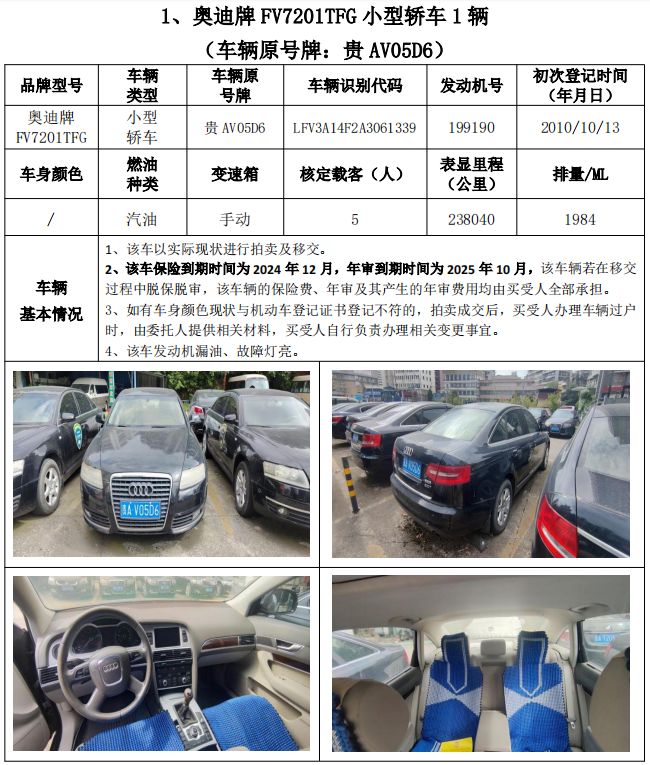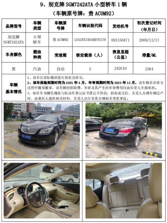 受委托,我公司定于2024年11月27日(星期三)下午14:30時,在貴州省公共資源交易中心開標室11室(貴陽市南明區遵義路)公開拍賣以下標的: