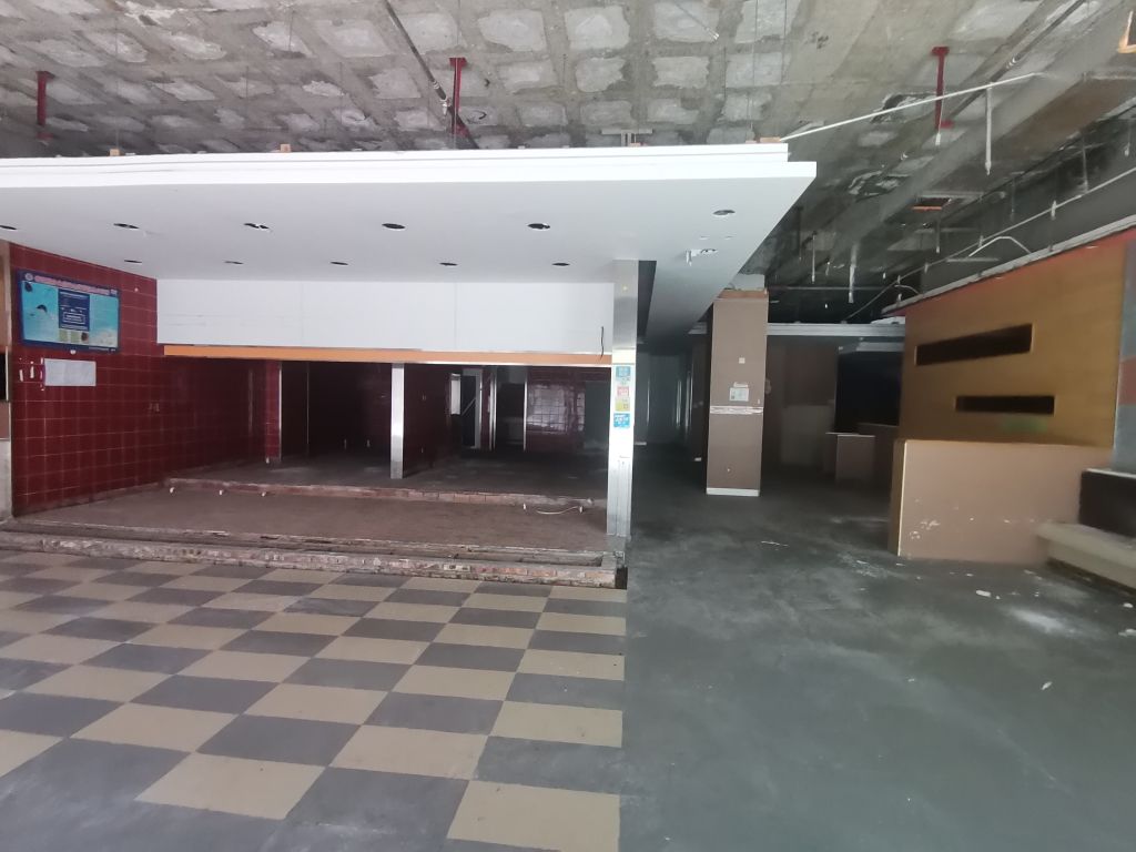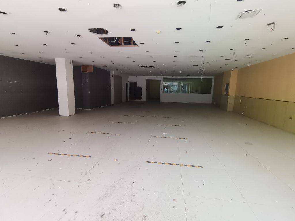戶型布局為敞開式通間,地面貼地磚,部分墻面貼刮膩子粉飾面、部分墻面為毛胚,天棚石膏板、磚石板材吊頂。