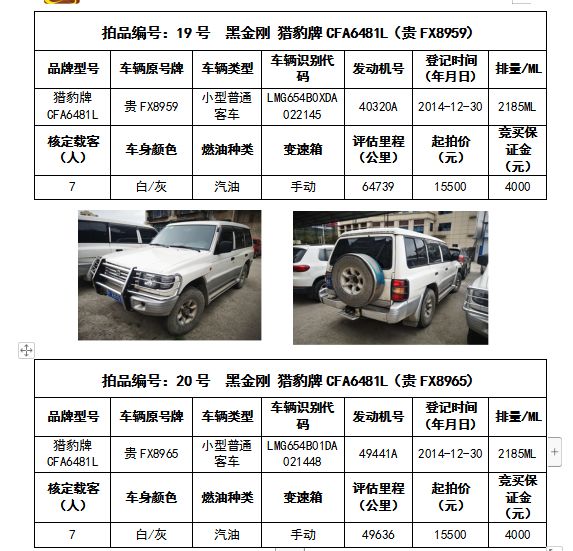 受委托,我公司定于2020年4月22日(星期三)下午14:30在貴州大方農(nóng)村商業(yè)銀行七樓會議室公開拍賣以下車輛: